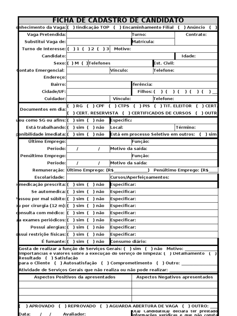 Ficha Cadastral Para Emprego