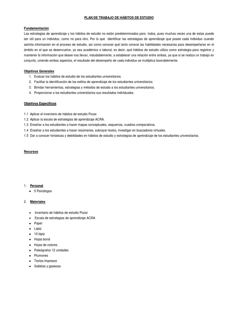 Programa Habitos De Estudio Y Estilos De Aprendizaje