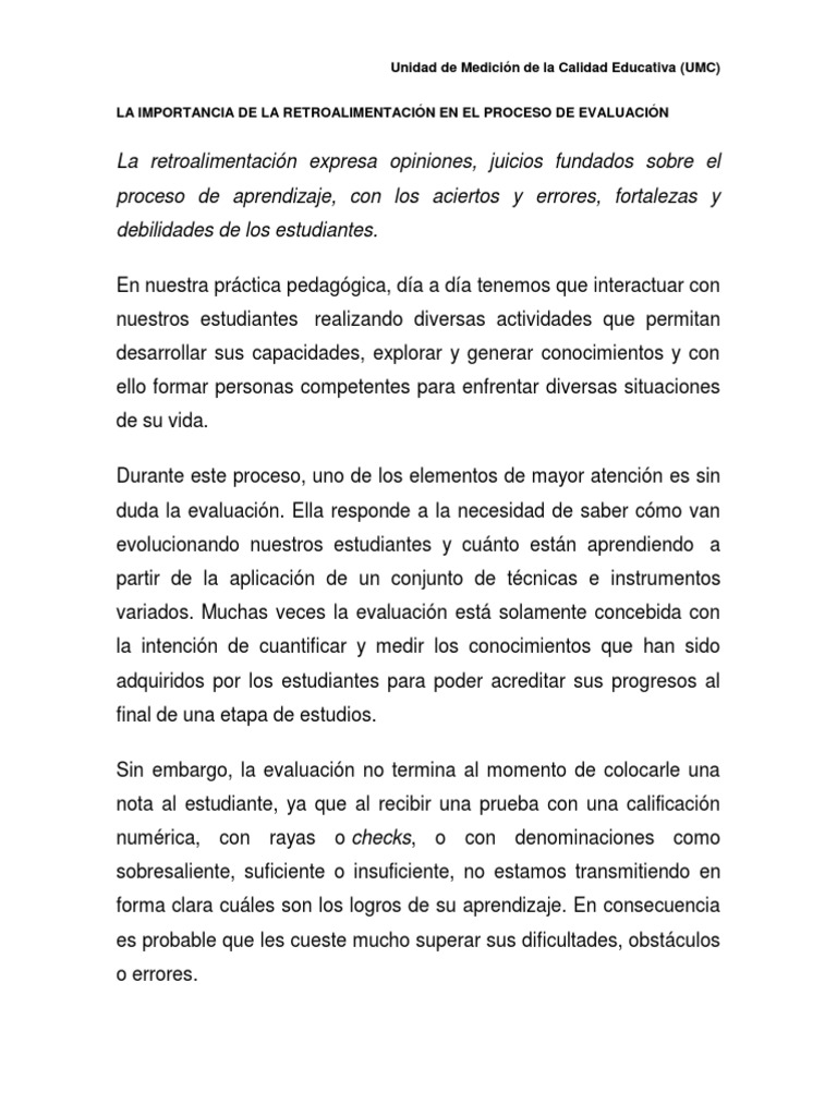 Importancia De La Retrolimentacion En La Evaluacion