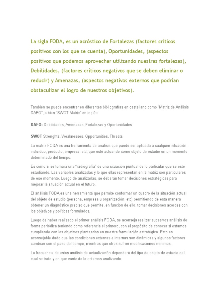 En Analisis F O D A Fortalezas Oportunidades Debilidades