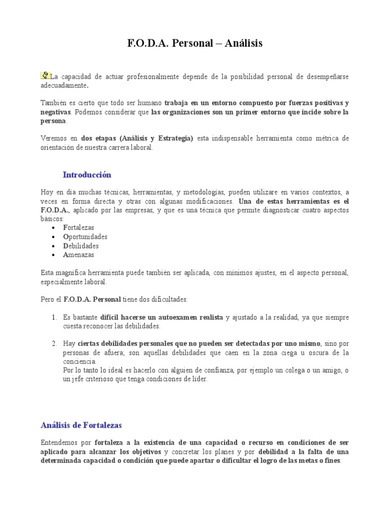 Analisis Foda Aplicacion En El Ambito Laboral Del Foda