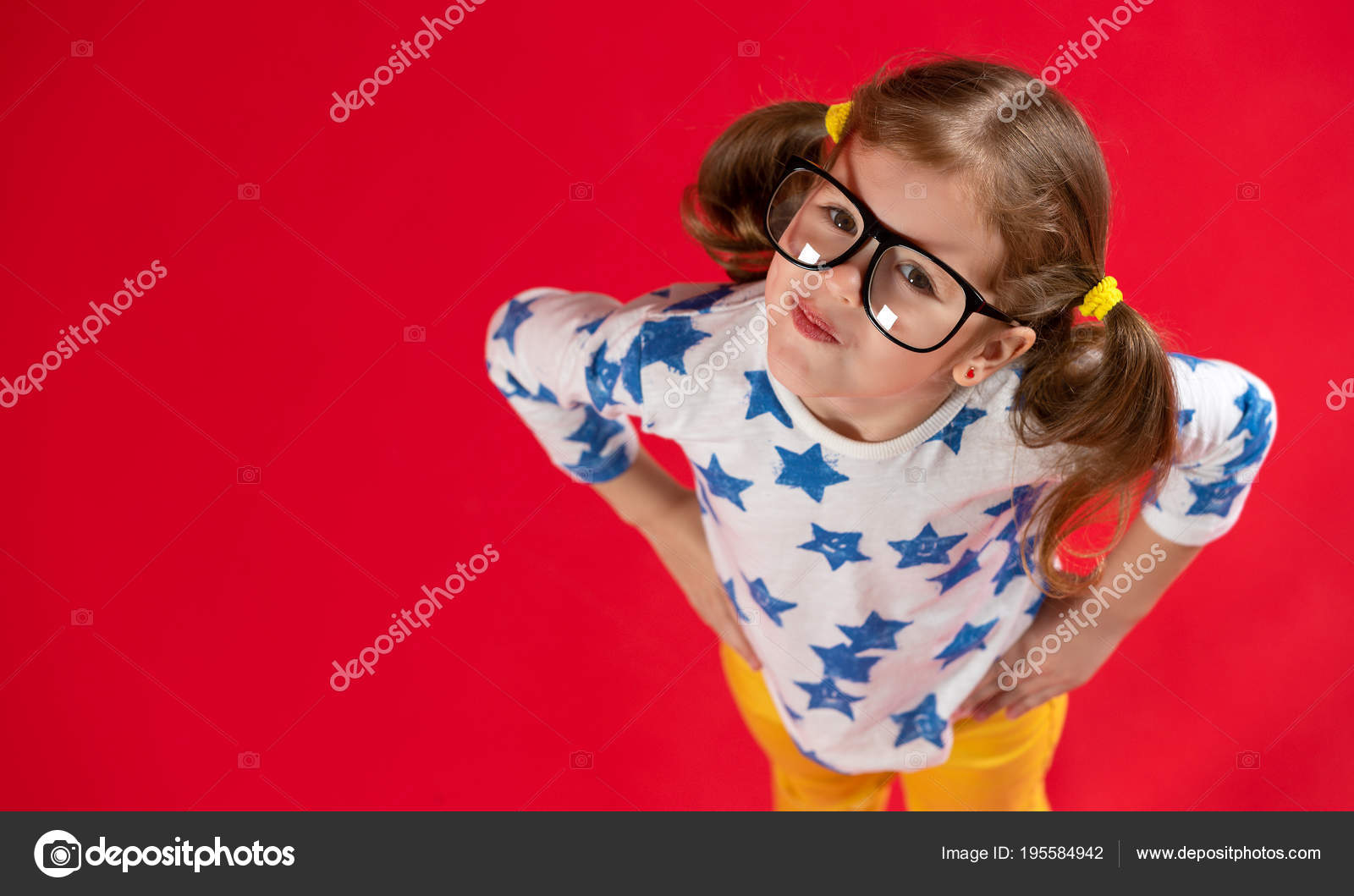 Menina Engracada Crianca De Oculos Em Fundo Colorido Stock