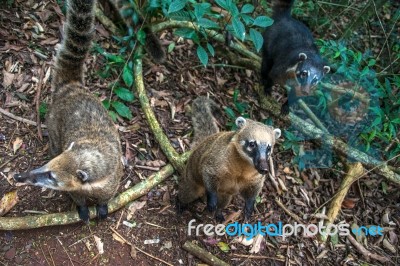 Coatis Raccoon Type Animals At Iguazu Falls Argentina