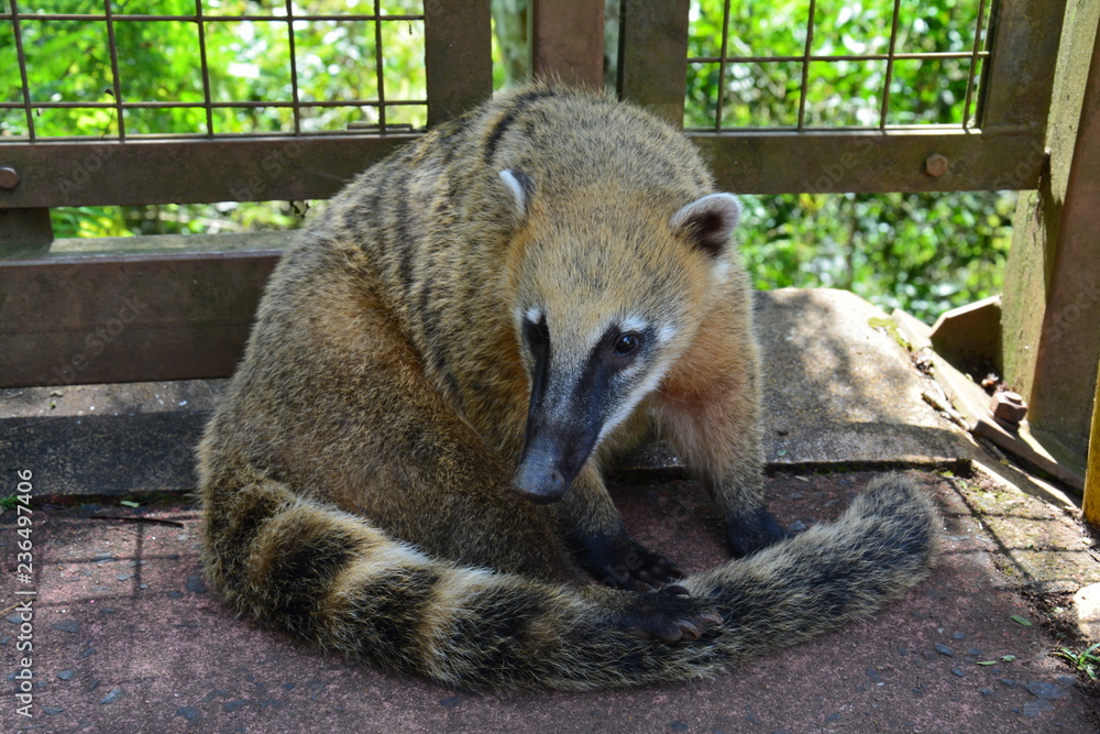 Iguazu falls animals coati. Its located on the border of argentina and brazil. Birds small mammals reptiles rain forest plantswow. There are many beautiful natural wonders.