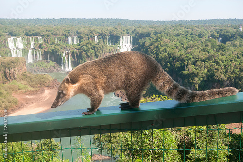 Wild Coati Nasua Posing On Brazilian Side Of Iguazu Falls