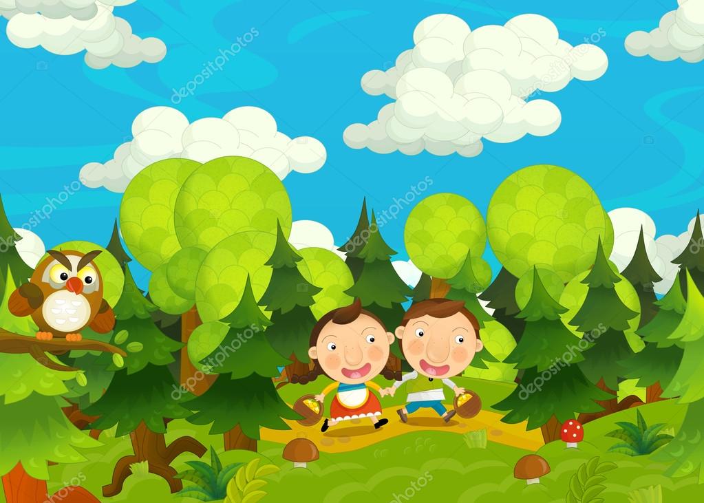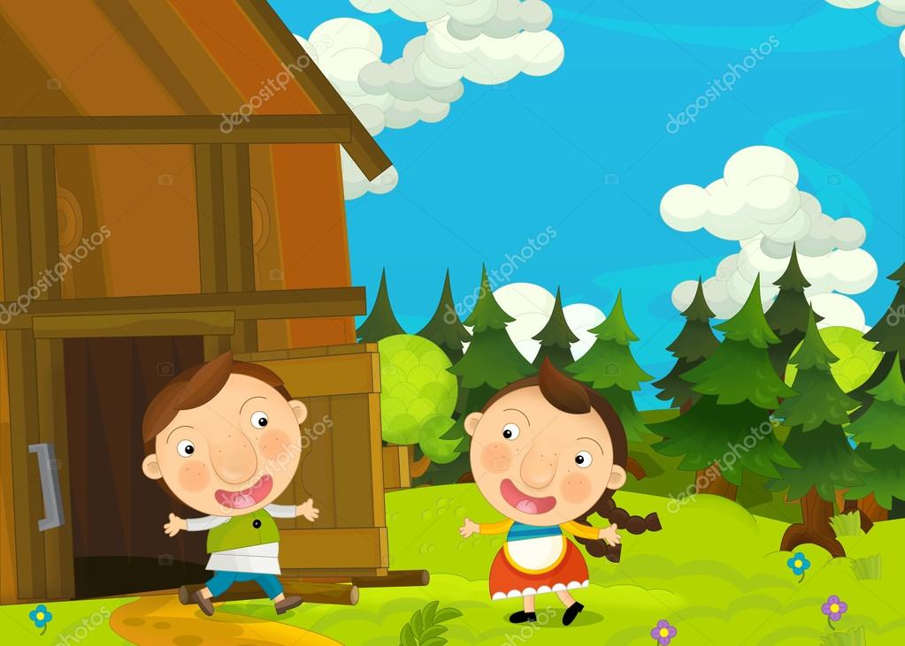 Desenho Animado Feliz E Fazenda Engracada Cena Com Jovem Par