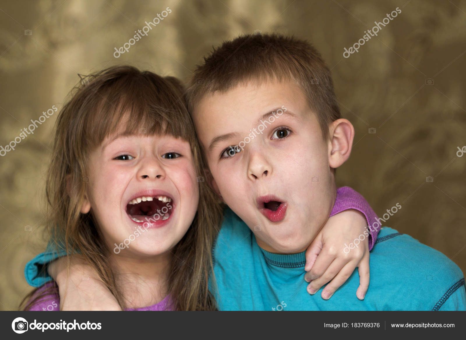 Foto De Retrato De Adoraveis Irmaos Feliz Sorrir E Rir Junto
