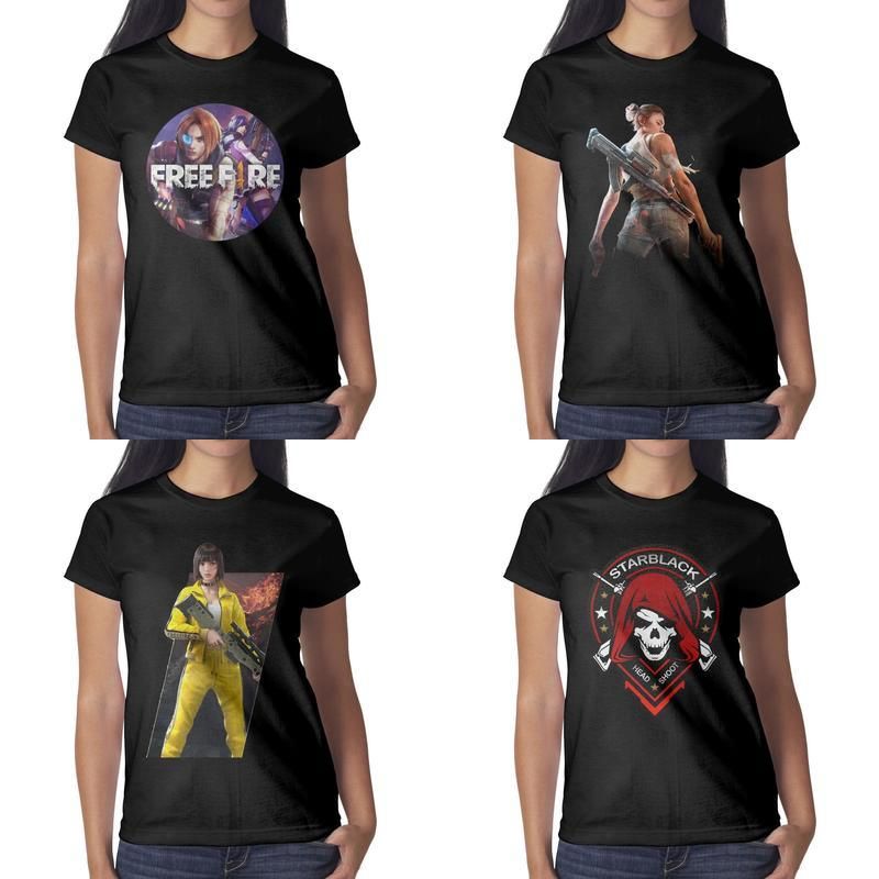 Womens Design De Impressao Free Fire Starblack Head Shoot Preto T Shirt Engracado Graphic Designer Banda Camisas Retro Camisa Esporte Novidade Arma