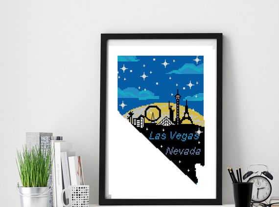 Las Vegas Cross Stitch Pattern State Of Nevada Cross Stitch Map Silhouette Night City Pdf Home Decor Long Distance Gift 186