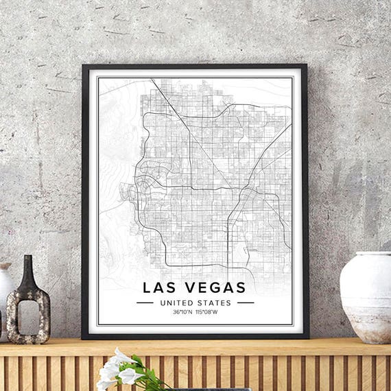 Las Vegas Map Las Vegas Print Las Vegas Poster Las Vegas Wall Art Map Of Las Vegas Las Vegas Decor Map Wall Art Map City Print Pdf