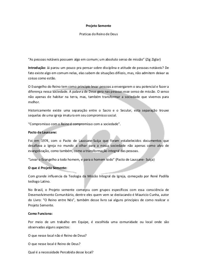 Projeto Semente Ideias Praticas Para O Reino De Deus
