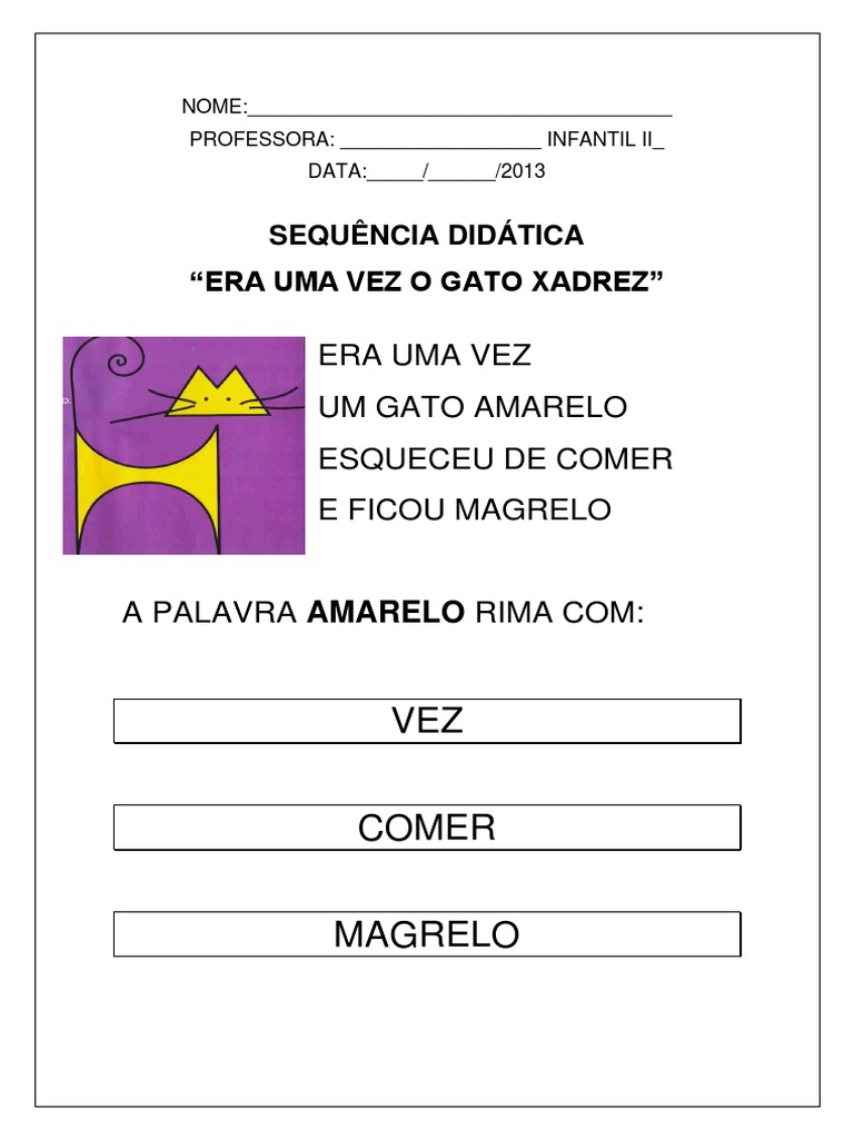 Gato Xadrez Sequencia Didatica Com Rimas E Cores Educa