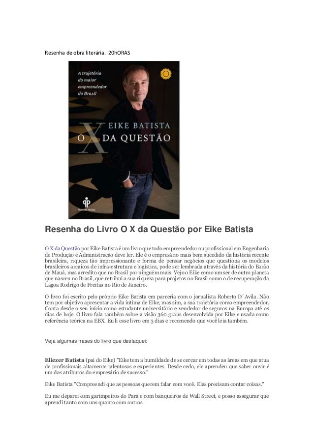 Resenha Do Livro O X Da Questao Por Eike Batista