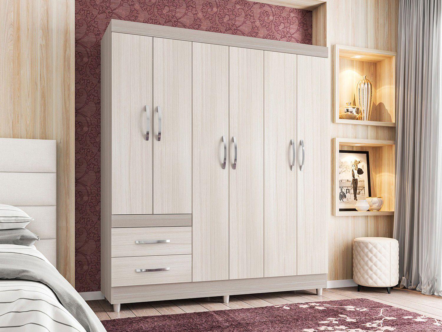 Guarda Roupa Casal 6 Portas 2 Gavetas Poliman Moveis