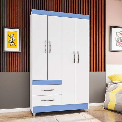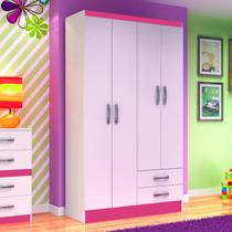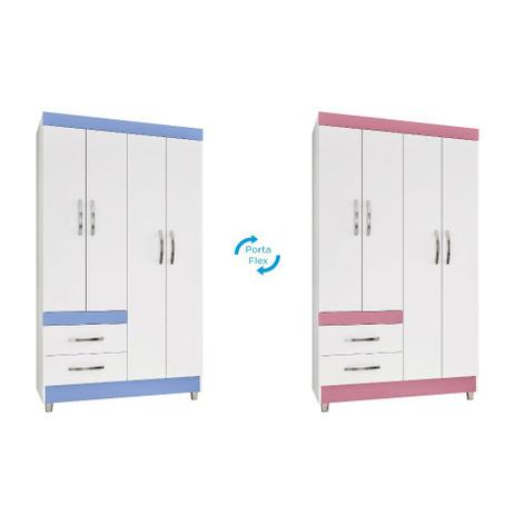 Guarda Roupa Solteiro 4 Portas 2 Gavetas Treviso 104 Moveis Doripel Branco Rosa Azul
