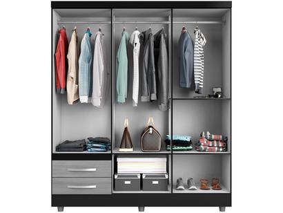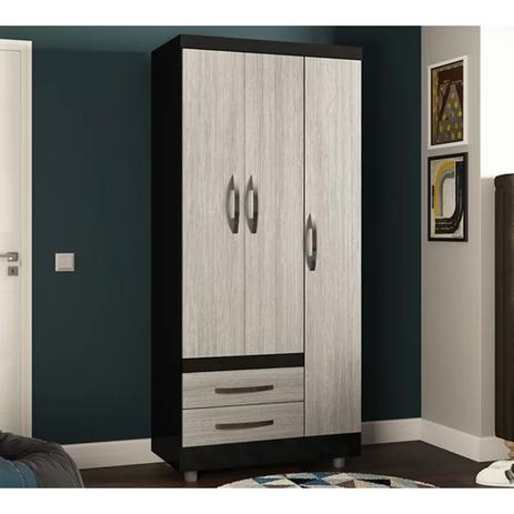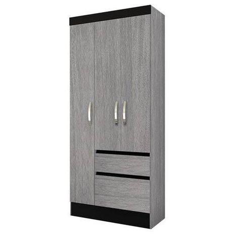 Guarda Roupa Solteiro 03 Portas Recife Preto Cinza Poliman