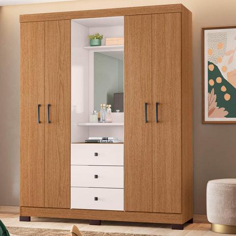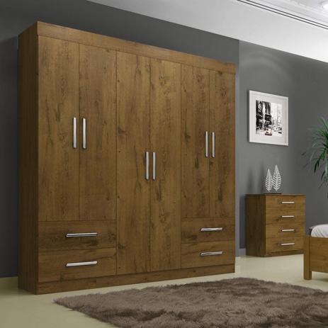Guarda Roupa Casal 6 Portas 4 Gavetas Recife Leifer Canela