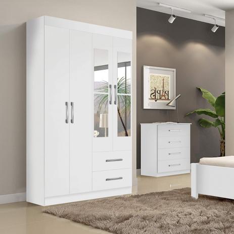 Guarda Roupa Solteiro 4 Espelhos 4 Portas Recife Leifer Branco