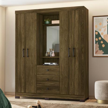 Guarda Roupa Solteiro 4 Portas Recife Mapi Moveis Rustico Carvalho