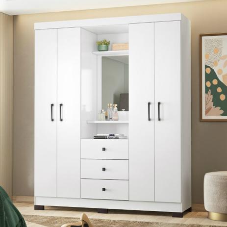 Guarda Roupa Casal 4 Espelhos 6 Portas Recife Leifer Branco