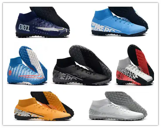 2019 100 Original White Blue Cr7 Flat Soccer Cleats Mercurial Superfly V Tf Ic Sx Neymar Jr Indoor Soccer Shoes High Ankle Mens Football Boots From