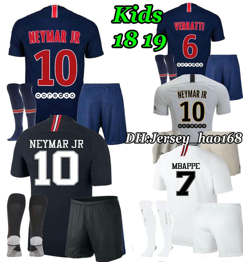 2018 2019 Kids Kits Verratti Neymar Jr Soccer Jerseys 18 19 Mbappe Home Cavani Di Maria Pastore Maillot De Foot Child Survetement Shirts