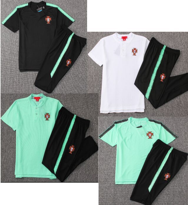2019 2018 2019 Portugal Ronaldo Short Sleeve Soccer Tracksuit Training Suit Pants Football Training Equipment Sportswear Trainingspak Kits From