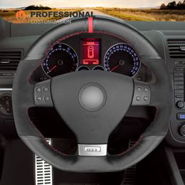 Mewant Black Genuine Leather Suede Hand Sew Comfortable Car Steering Wheel Cover For Volkswagen Golf 5 Mk5 Gti Vw Golf 5 R32 Passat R Gt