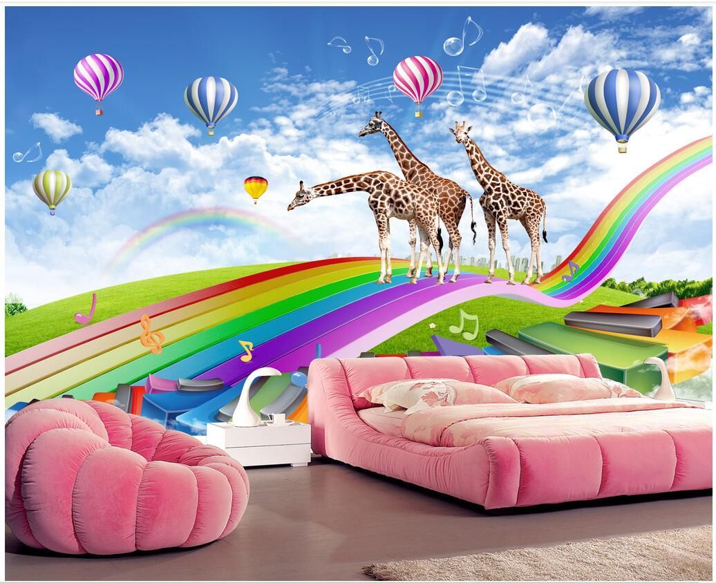 3d Room Wallpaper Cloth Custom Photo Giraffe Rainbow Bridge In Children S Room 3d Wall Murals Wallpaper For Walls 3d Print Fabric Wallpaper High