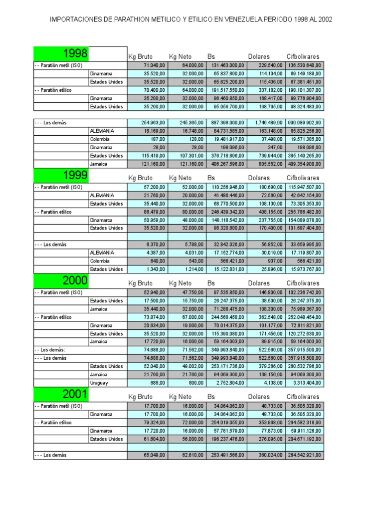 Importacion Parathion Metilico Y Etilico 1998 2006 Xls