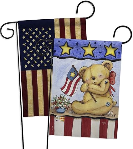 Breeze Decor H111006 Bo Pat Bear Americana Patriotic Impressions Decorative Vertical 28 X 40 Double Sided House Flag