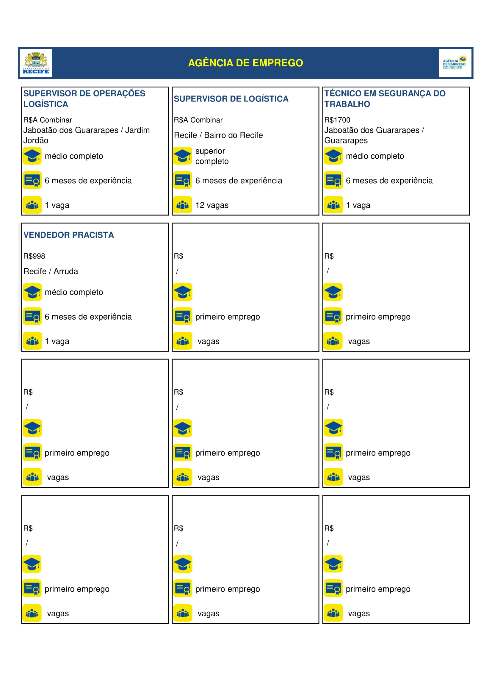 Agencia Do Trabalho Do Recife Quadro De Vagas Desta Sexta