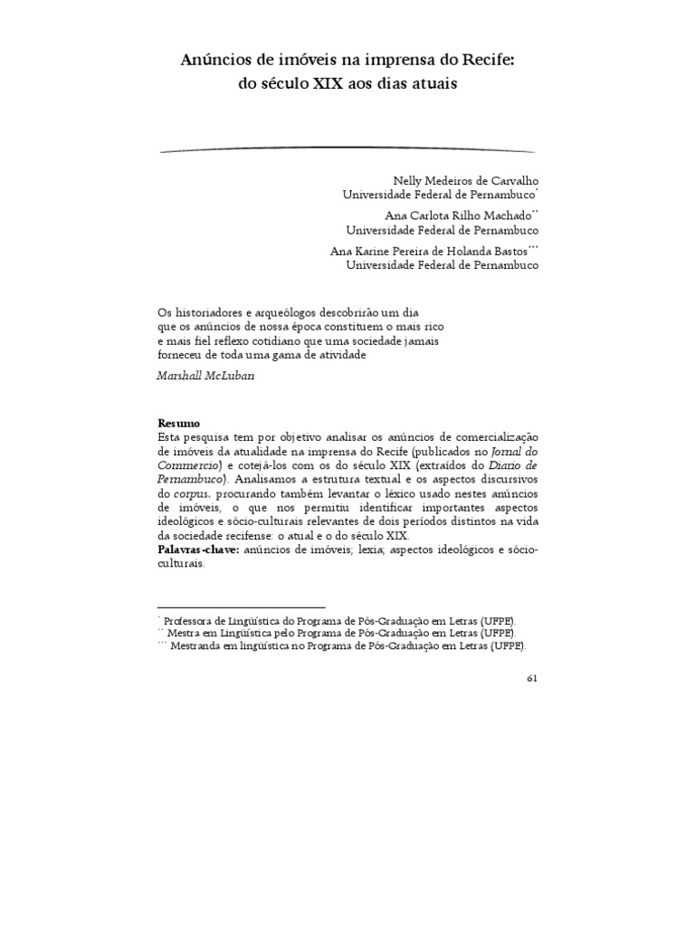 Anuncios De Imoveis Na Imprensa Do Recife Do Seculo Xix