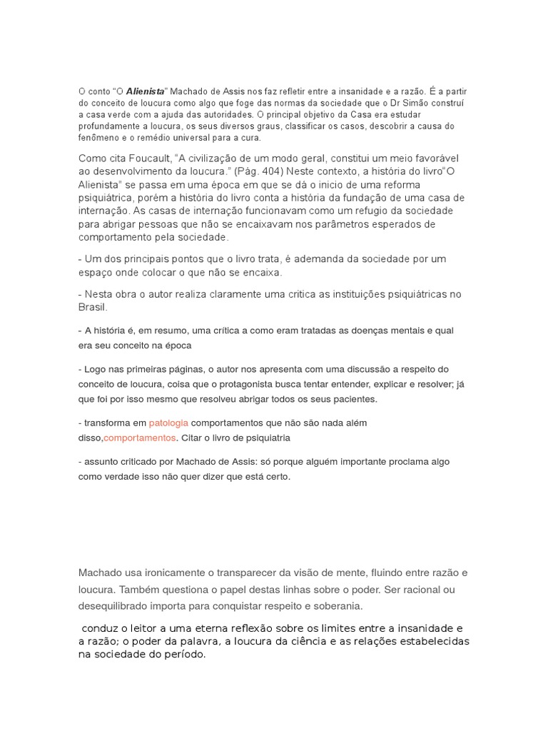 Resumo Do Texto O Alienista Trabalhos De Casa January 2020