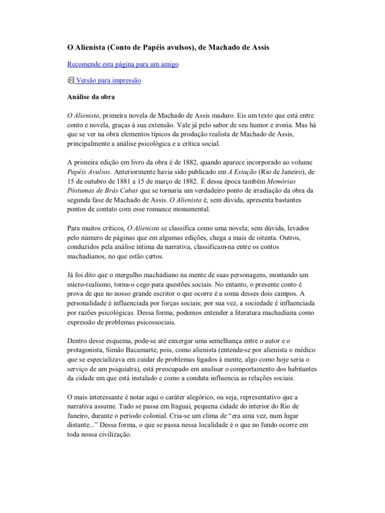 Resenha O Alienista De Machado De Assis Trabalhos Para