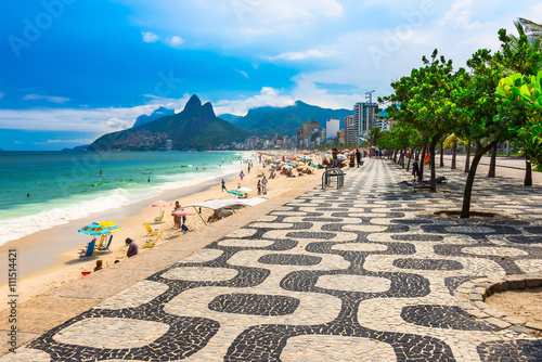 Ipanema Beach With Mosaic Of Sidewalk In Rio De Janeiro