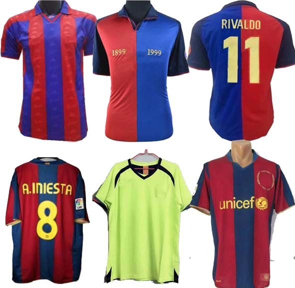 2019 Retro Soccer Jersey Barcelona 96 97 100th 07 08 09 10 11 Xavi Ronaldinho Ronaldo Rivaldo Guardiola Iniesta Puyol Messi Barca Maillot De Foot From