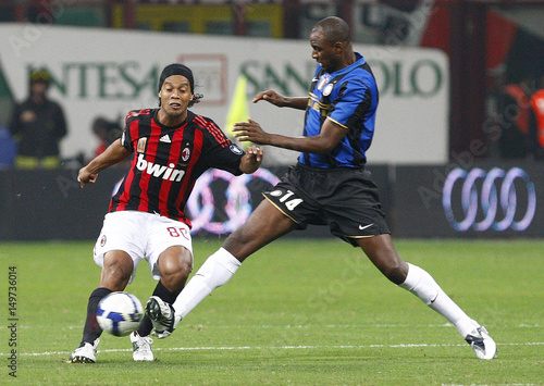 Ac Milan S Ronaldinho Fights For The Ball With Inter Milan S