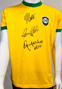 Brazil Ronaldinho Ronaldo And Pele Signed Soccer Jersey