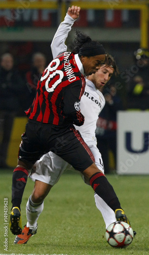 Ronaldinho Of Milan Is Challenged By Sergio Ramos And
