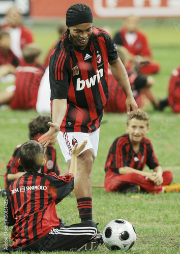 Ac Milan S Newly Signed Player Ronaldinho Greets Children