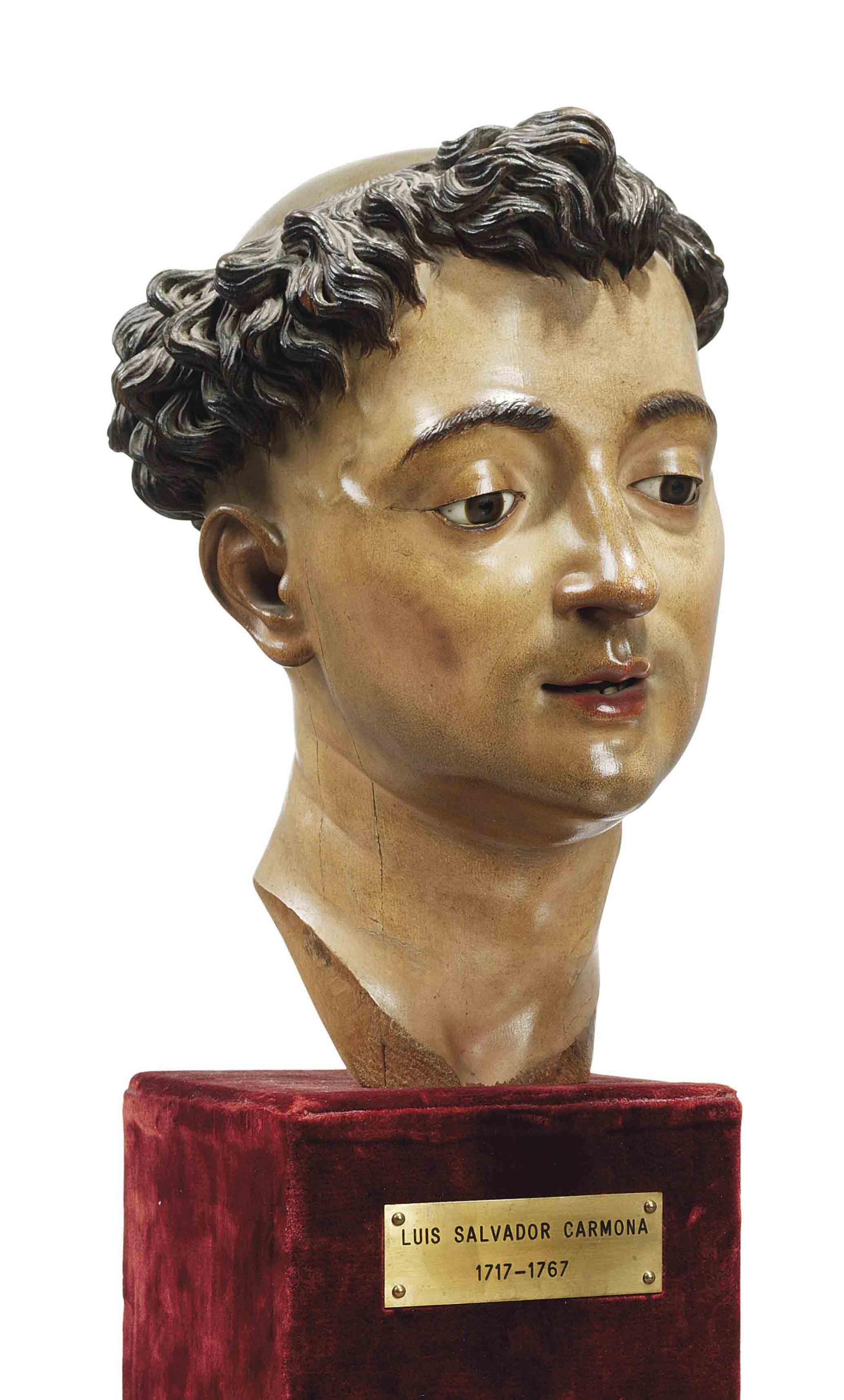 A Spanish Polychrome Wood Bust Of Saint Lawrence