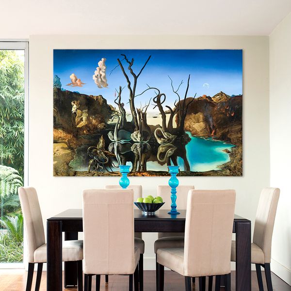 2019 Salvador Dali Painting Swans Reflecting Elephants Art Pictures Oil Painting Wall Decoration Poster Home Decoration Hd Canvas From