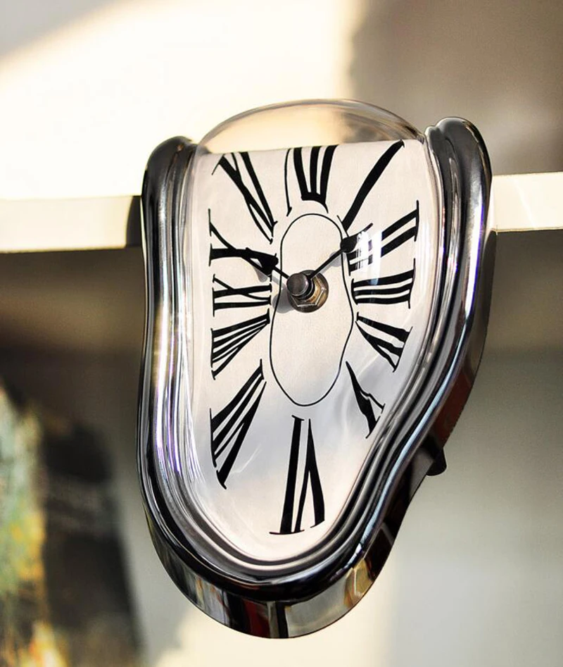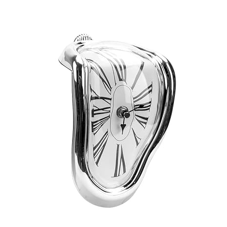 Details About Wall Clock Salvador Dali Surrealist Style Silver Melting Distorted Novel Gift