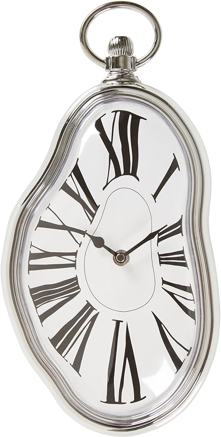 Style Surreal Melting Distorted Wall Clock Surrealist Salvador Dali Style Silver Vik