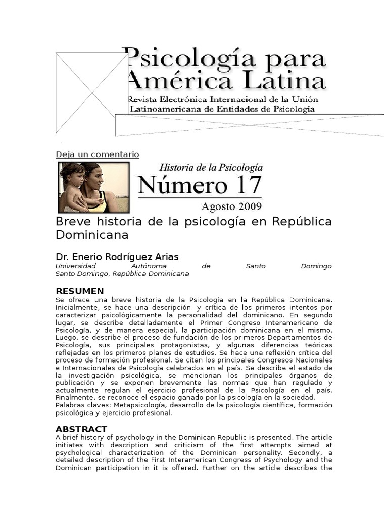 Historia De La Psicologia Republica Dominicana Sicologia