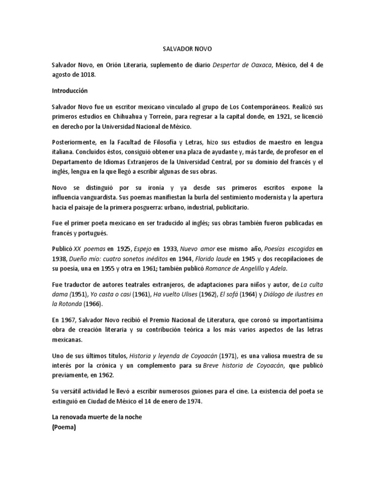 Salvador Novo Como Sera Posible Que Nada