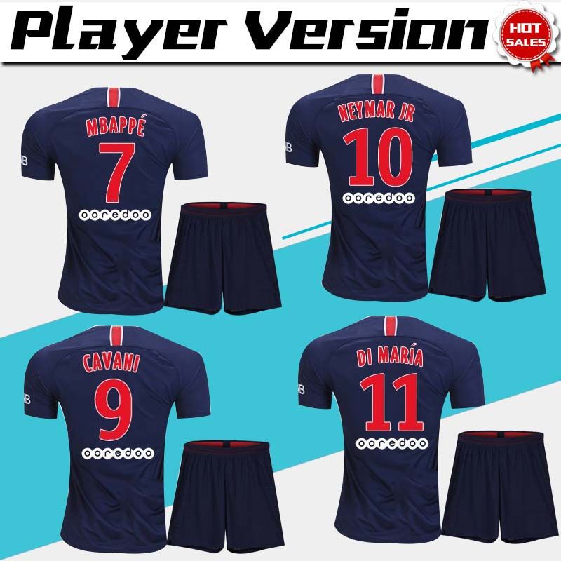 Player Version Suit 10 Neymar Jr Psg Home Soccer Jersey Suit 18 19 Home Soccer Shirt Kit 7 Mbappe Psg Football Uniform Jersey Shorts