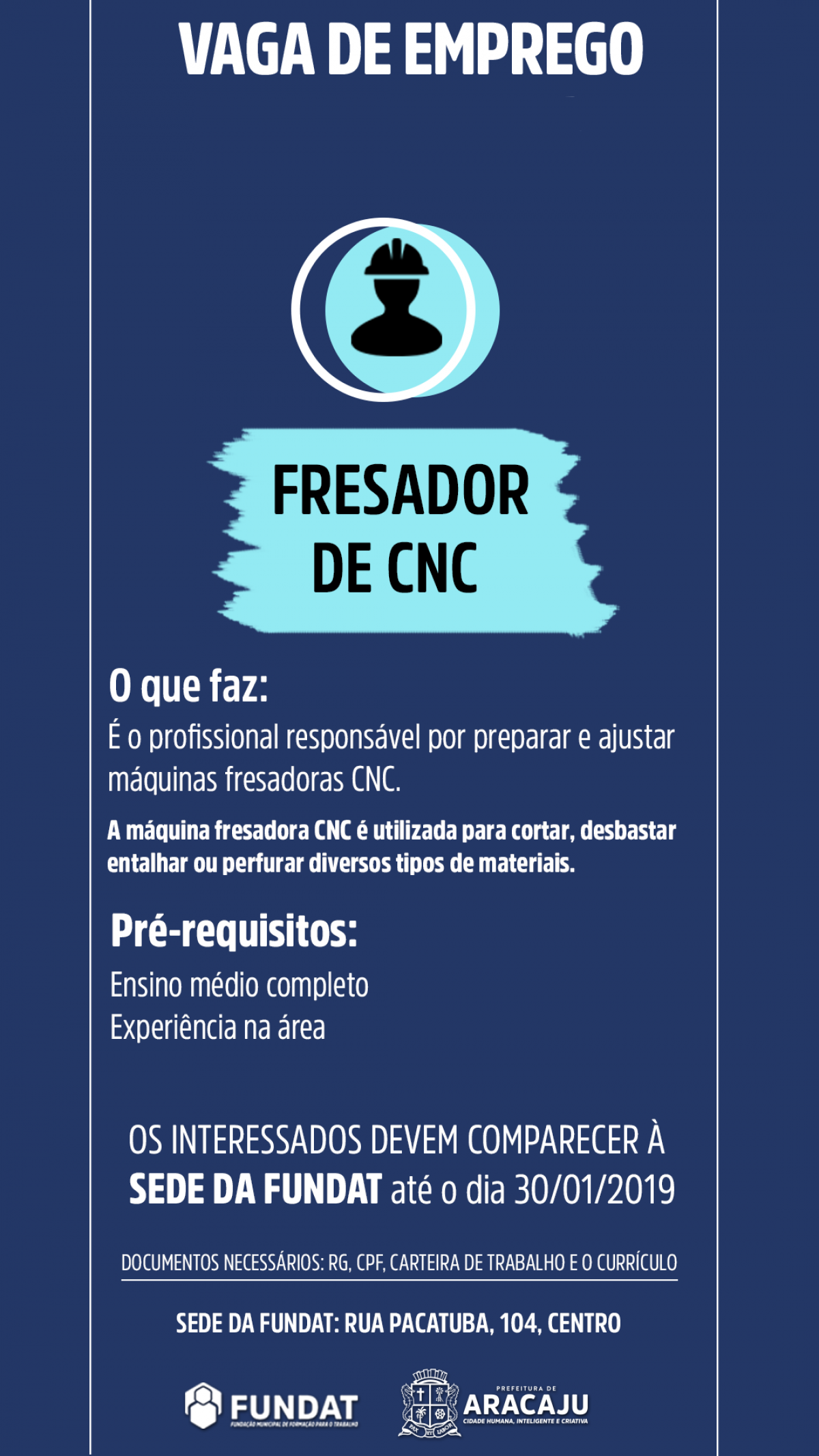 Fundat Aracaju Anuncia Vaga De Emprego Para Fresador De Cnc