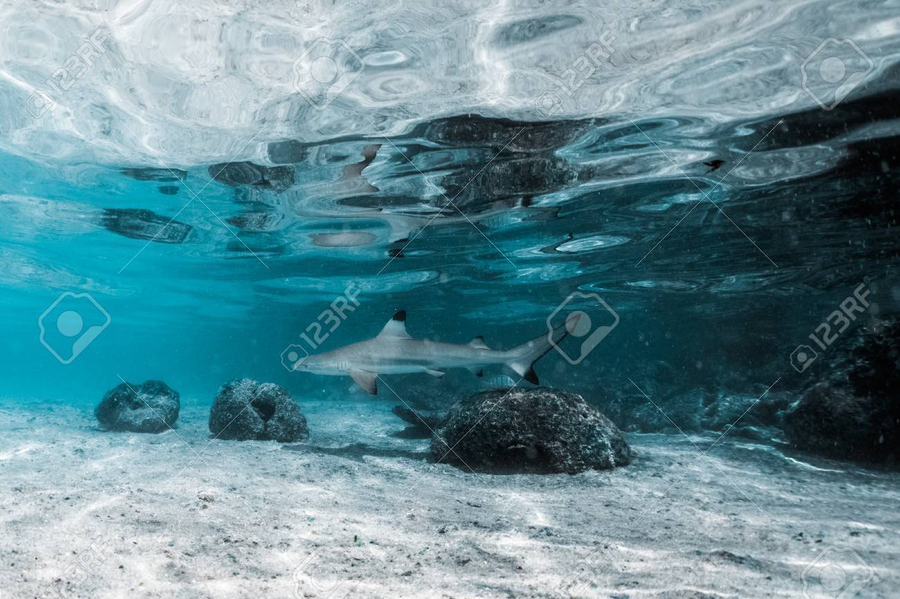 Tubarao Do Recife Carcharhinus Melanopterus Stock Photo